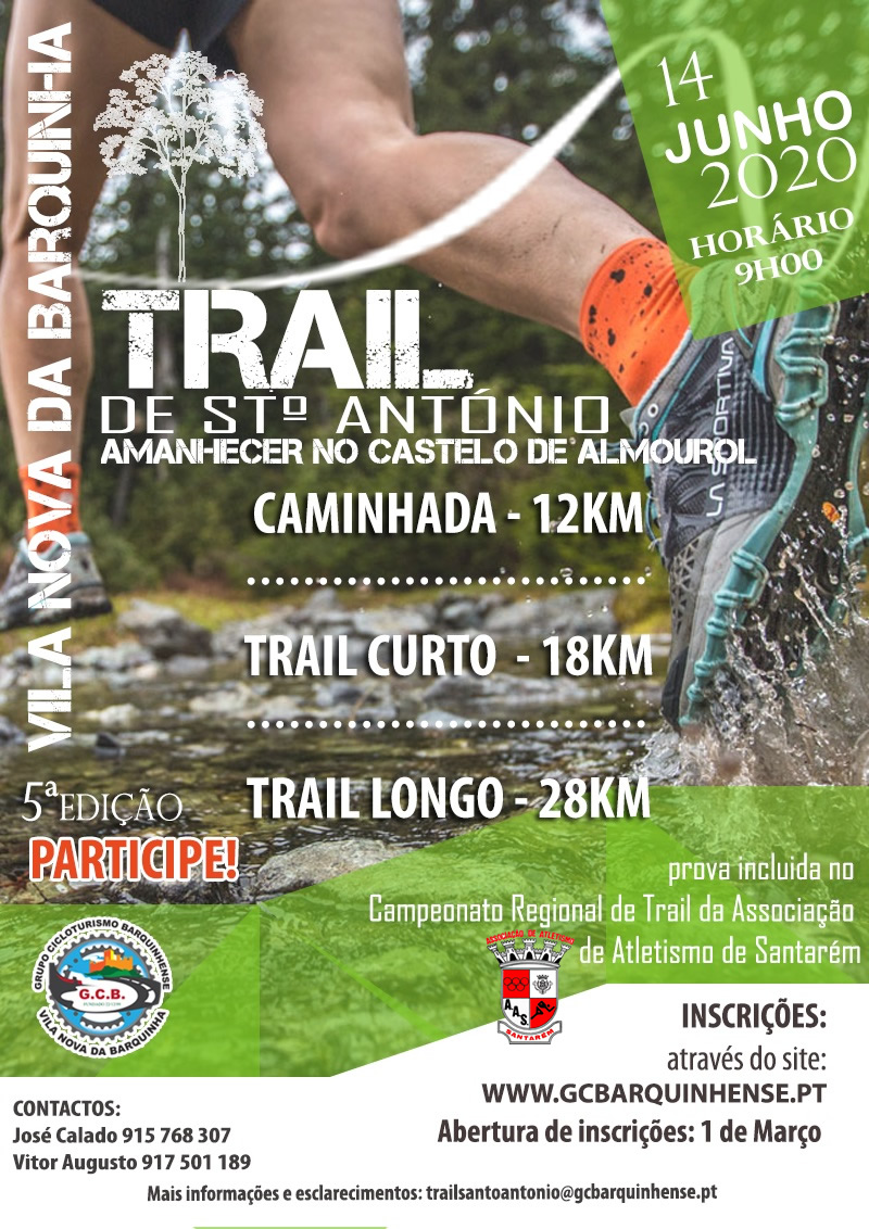 O Grupo de Cicloturismo Barquinhense no dia 14 de Junho de 2020 vai realizar a V edição do Trail de Santo António "Amanhecer no Castelo de Almourol", prova inserida no campeonato regional da associação de atletismo de Santarém.