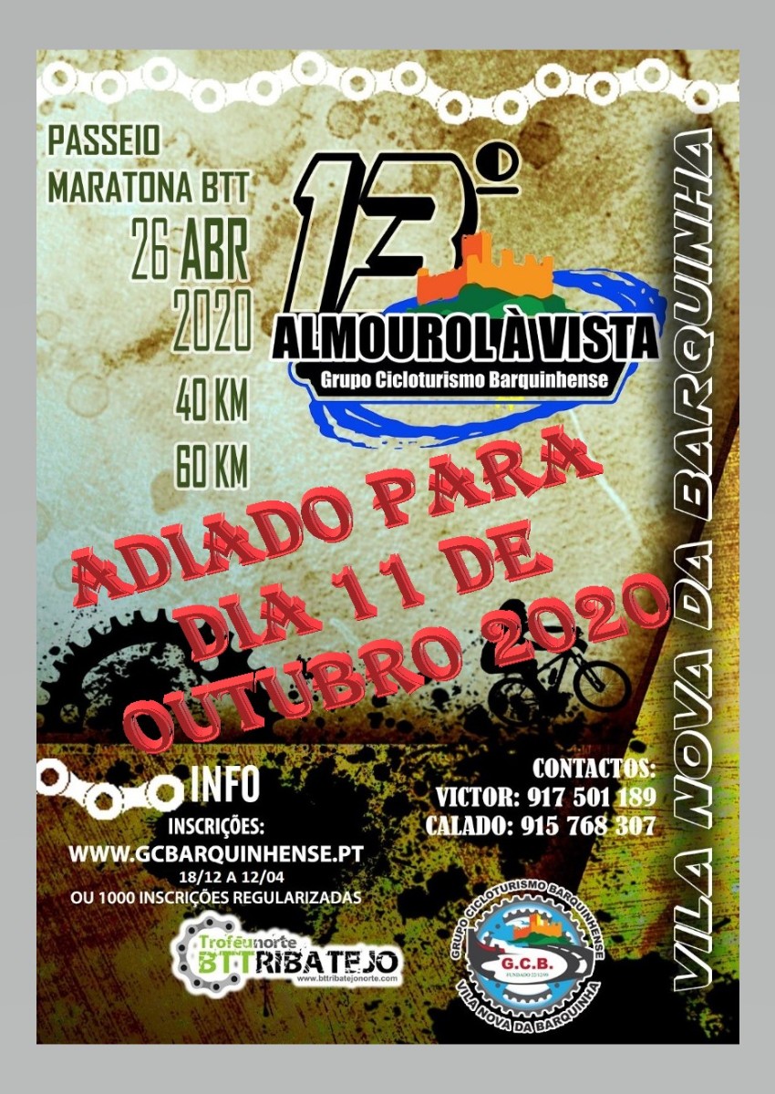 A 26 de abril de 2020 o Grupo de Cicloturismo Barquinhense vai realizar mais uma edição do Almourol à Vista, passeio e maratona BTT, pronta para mais um ano surpreender todos os participantes.
